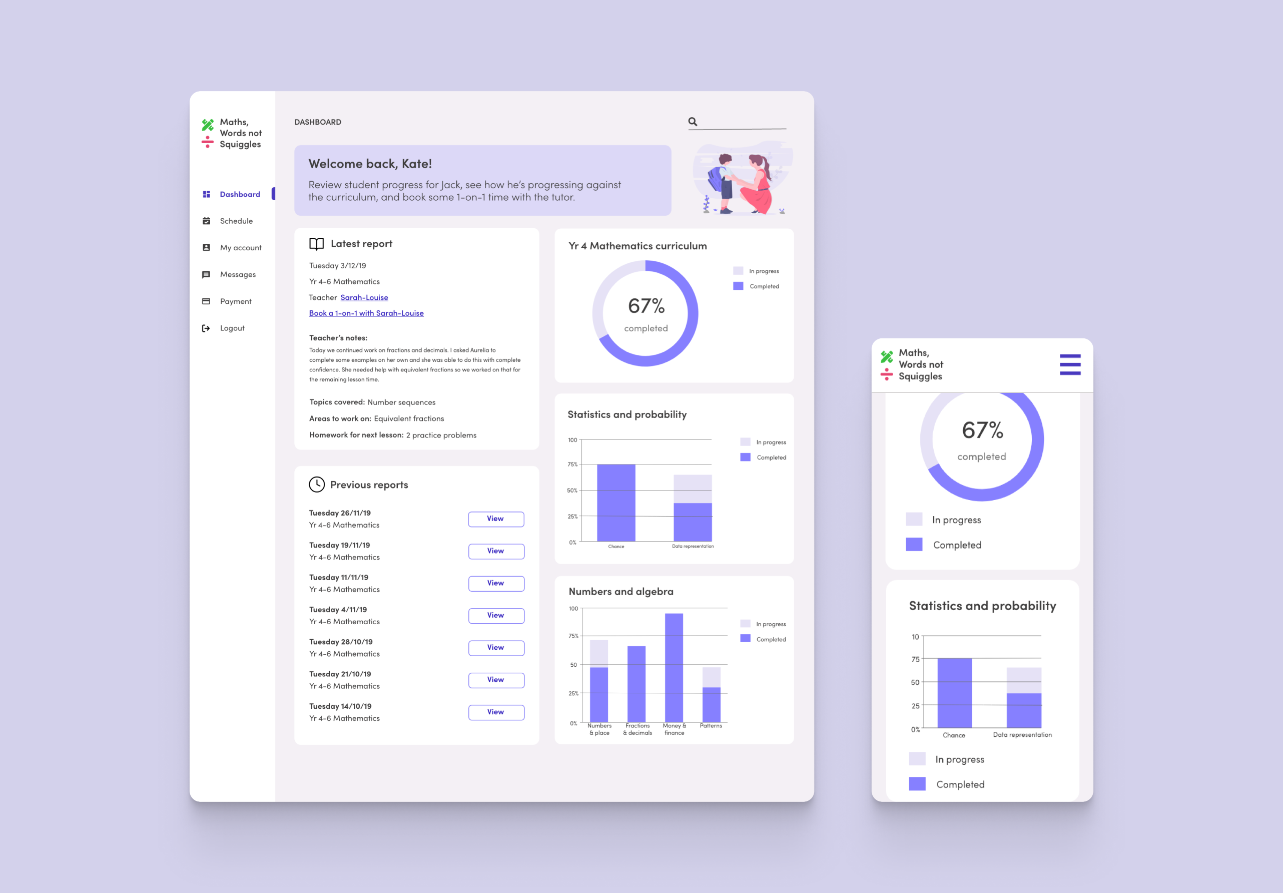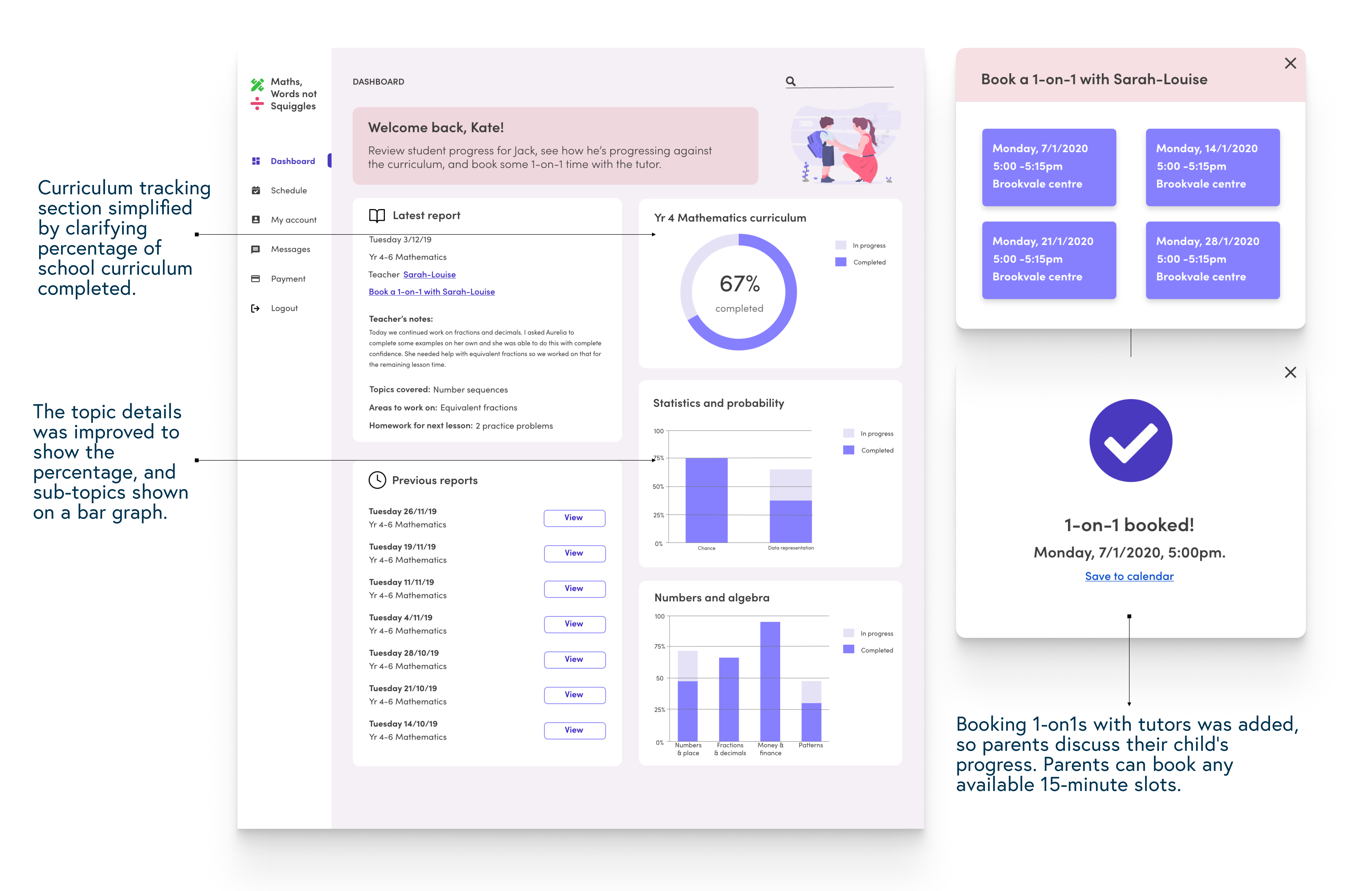 We felt that the ability to track progress and have more meaningful discussions with the tutor were more important features not only to parents, but also to develop trust and value in Maths, Words Not Squiggles service.